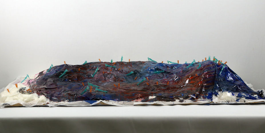 Vulnerability is central to this exploration. Intuitive gestures and intentional material combinations guide each piece. The result is a form of living documentation—work that unfolds through both conscious decision and subconscious expression.